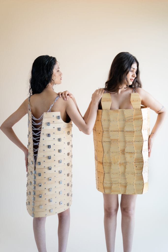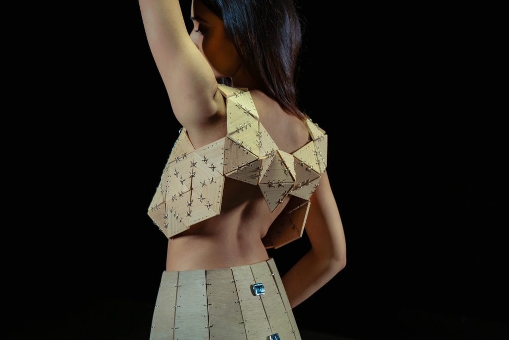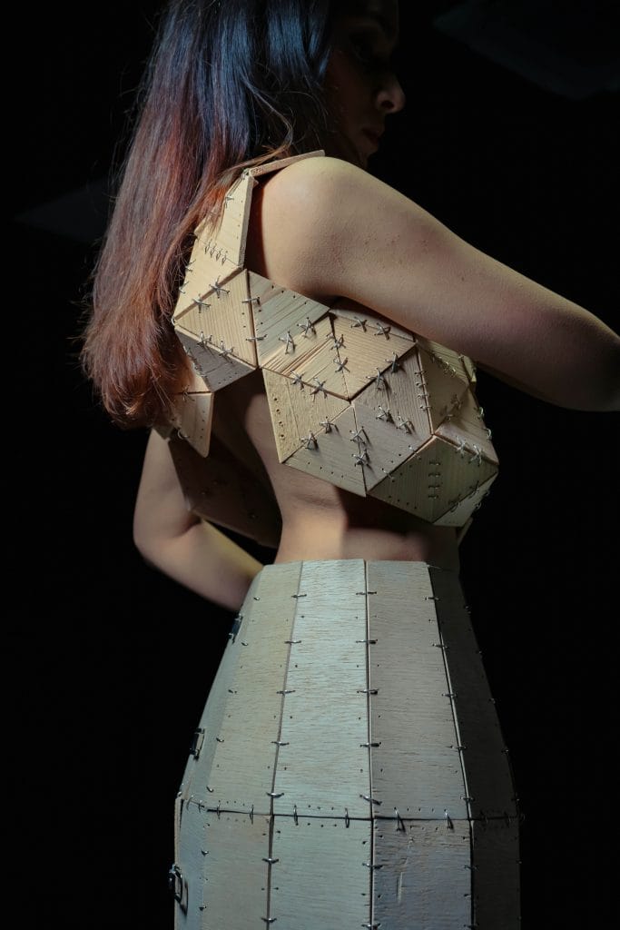 What happens when a designer treats garments not as fabric to be sewn, but as structures to be sculpted? For fashion graduate Manasi Parmar, the answer lies in wood, a material rarely associated with the human body, let alone the fluidity of fashion. Her debut collection breaks away from textile traditions, proposing garments that sit somewhere between sculpture and clothing, utility and statement.